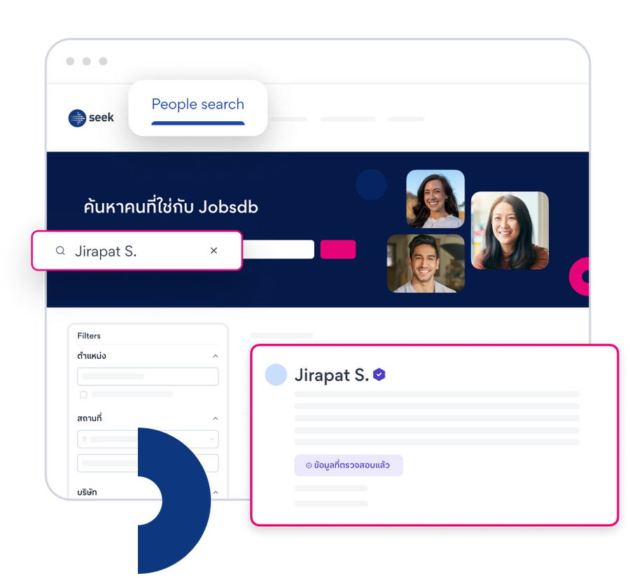 ขับเคลื่อนด้วยเทคโนโลยี AI อันล้ำสมัยของ SEEK ที่ช่วยแนะนำผู้สมัครที่เหมาะสมกับตำแหน่งของคุณได้แม่นยำมากยิ่งขึ้น พร้อมเพิ่มโอกาสในการเข้าถึงและคัดเลือกผู้หางานที่ใช่ได้อย่างมีประสิทธิภาพ