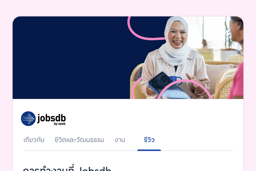 เข้าถึงกลุ่มผู้หางานที่ใช่ ด้วยข้อมูลที่ชัดเจน 86% ของผู้หางานดูโปรไฟล์บริษัทเมื่อค้นหางานใหม่²