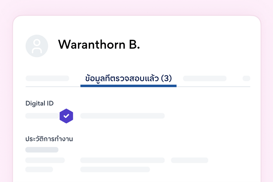 SEEK Pass ช่วยให้คุณเห็นผู้สมัครที่ได้รับการยืนยันข้อมูลต่าง ๆ ที่เกี่ยวกับการทำงานก่อนใคร เพื่อให้คุณเจอคนที่ใช่ได้รวดเร็วยิ่งขึ้น ลดความเสี่ยงในการสรรหาบุคลากร และคัดเลือกผู้หางานที่ใช่ได้อย่างมั่นใจ